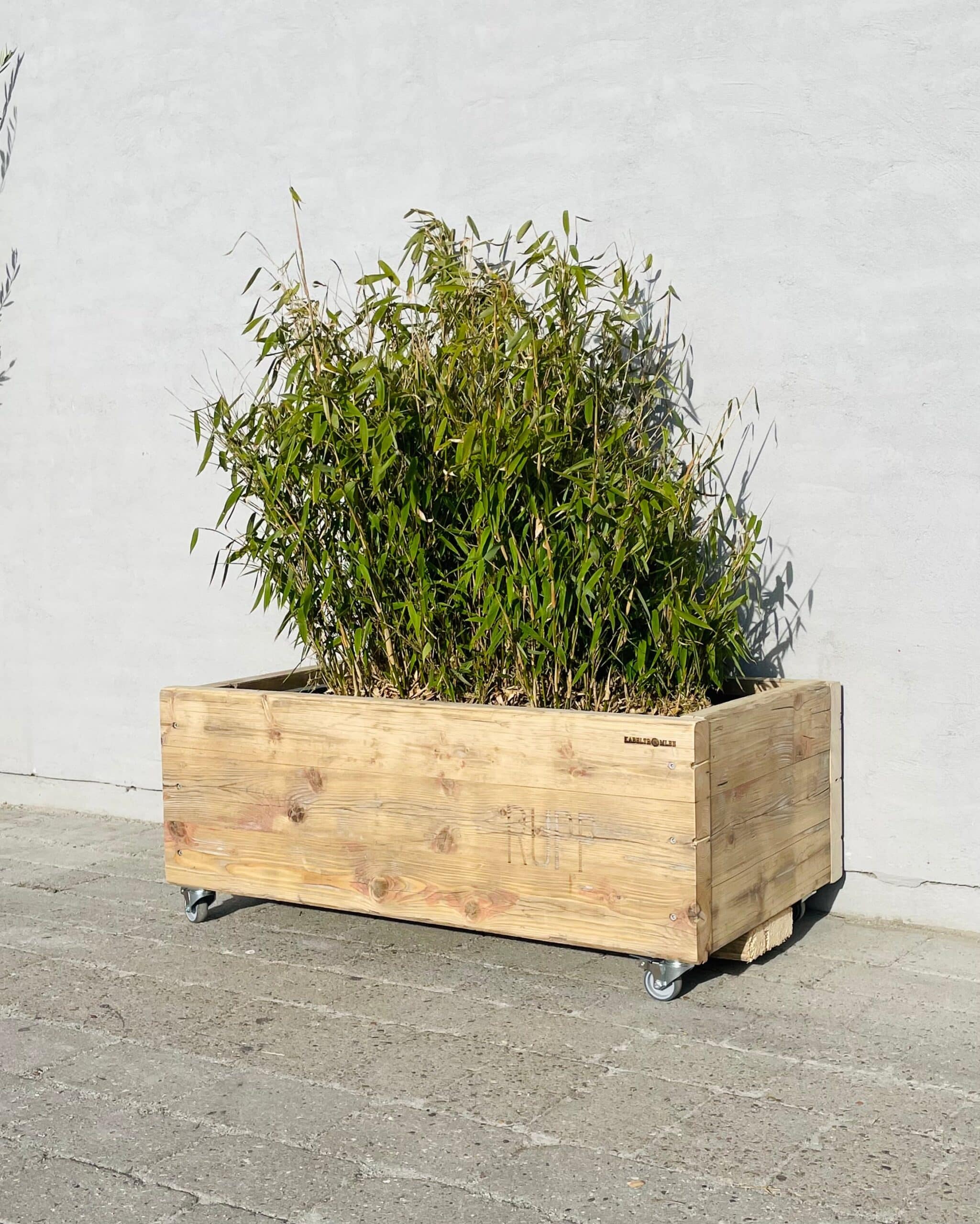 Om produktet Perfekt til forårets og sommerens blomster. Plantekassen kan fås på hjul, så den er nem at flytte, og så er der plastikkasser indvendig til at plante i. Vores blomsterkasser er produceret af genbrugsbrædder, her får du altså et helt unik, og